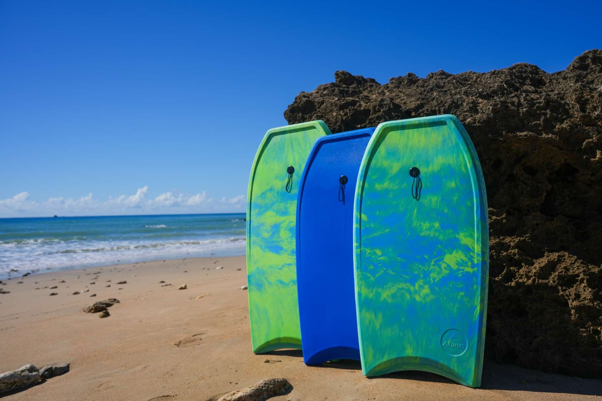 【Unique color design】 The exclusive technology of simulation marble color creates each unique bodyboard. Bright solid colors also available. By using the integrally molding process, the color never peels off or transfers to the rider's clothes.